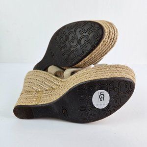 UGG Tawnie Beige/Cream Suede Espadrille Wedge Sandal 6 1000404