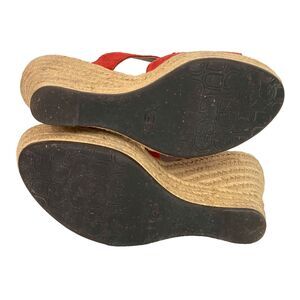 These shoes are in great condition! Minimal wear, inside and out! There is a tiny stain near the toe of one shoe. This is the Tawnie Wedge in bright coral pink. The wedge heel is almost 4 inches tall, the upper and inner lining made of genuine leather. Women's size 7.5, UK size 6, and EU size 38.5.