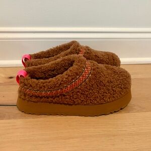 Color Hardwood. Never worn outside the house. They were too big for me and were a gift. Excellent condition. Smoke and pet free home.