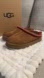 Stylish UGG slippers in tan with a vibrant red accent. Ideal for cozy wear.