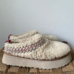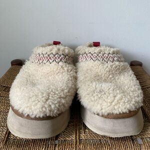 UGG Tazz Slippers Women’s 10 Shearing Braid Platform Mules in White Borg