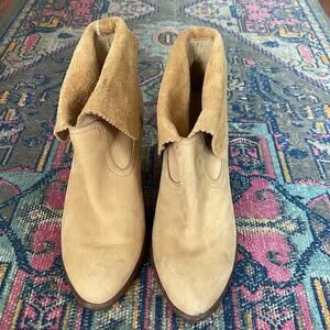 UGG Thames Nubuck suede leather stacked heel foldover ankle bootie sz 8