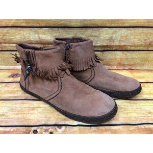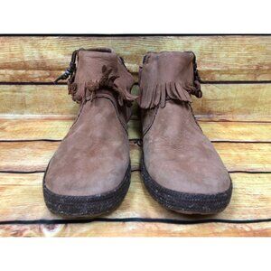 UGG Tiana Fringe Ankle Booties Brown Leather Side Zip Casual 1005454 Womens 10 (