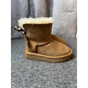 UGG Toddler Mini Bailey Suede Bow Chestnut Ankle Boots size 6