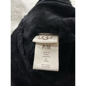 New with tags UGG trapper-style winter hat in classic black. Designed for cold weather with a water-resistant outer shell and ultra-soft faux fur lining throughout, including ear flaps. Features adjustable snap ear flaps that can be worn up or down for versatile warmth and coverage.