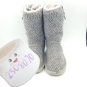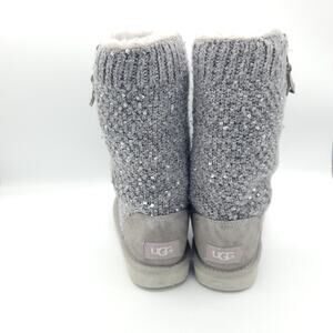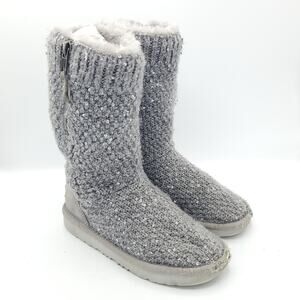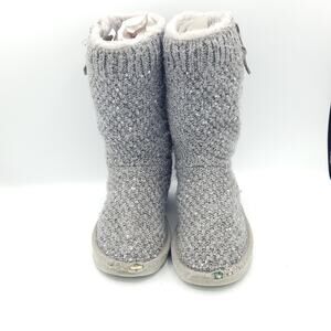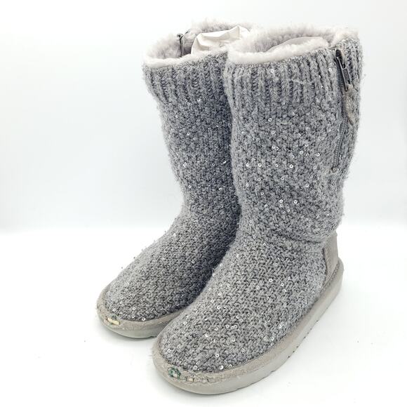 UGG Treadlite Silver Gray Sequin Knit Mid Calf Sweater Boots girls Size 13