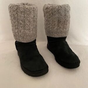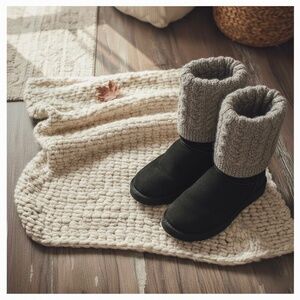 Color: Classic Black suede with stylish Gray cable-knit cuffs