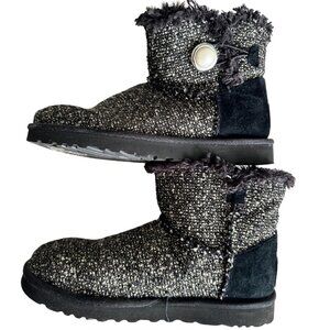 UGG Tweed Ankle Boots Women’s 7 Black Bouclé Fur Lined Winter Boots