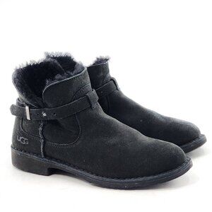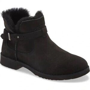 UGG UGG Elisa Genuine Shearling Bootie Black Suede Sheepskin Lined Pull On