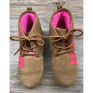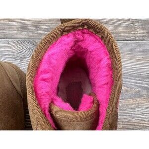 UGG Ultra Mini Chopd Chestnut Taffy Suede UGG Logo Boots Pink Spell-Out Size 6