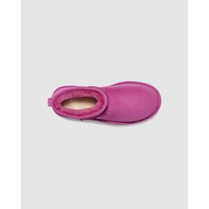 Featuring a low shaft and asymmetrical topline for easy on-and-off wear. Crafted from 17mm Twinface sheepskin with overlock stitch detailing, suede heel counter, and rear pull tab for a classic UGG look. Lined with 17mm UGGplush™ made from upcycled wool and TENCEL™ Lyocell for softness and comfort. Finished with a sugarcane EVA or Treadlite by UGG™ outsole for lightweight, flexible traction, and a topically applied water-repellent treatment for protection. Material: Sheepskin upper and lining, suede heel counter, EVA outsole. Shaft height: 3.5". Fits true to size