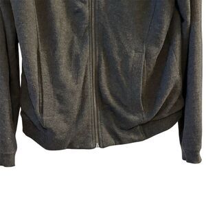 Keywords: Ugg, hoodie, medium, gray/black, unisex, full zip, drawstring hood, fall, machine washable, pre-owned, excellent condition, rayon, spandex, cotton, regular fit.
