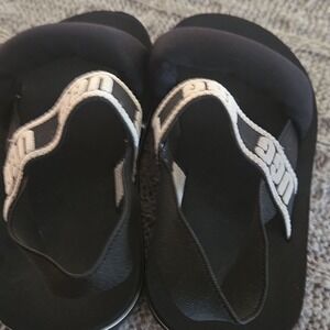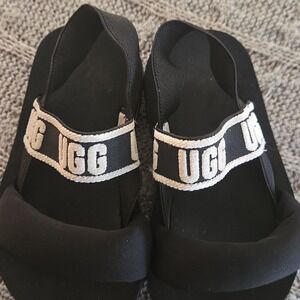 These UGG Unisex Kids' Sandals feature a stylish and comfortable design with elastic straps for a snug fit. Perfect for casual wear, these sandals offer easy slip-on convenience and are ideal for warm weather outings. Used but excellent condition! Size T9