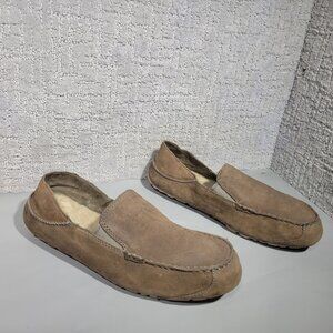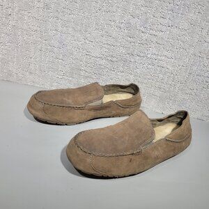 UGG Upshaw Mens US Size 11 Brown Leather Wool Collapsible Slip-On Loafer Shoes