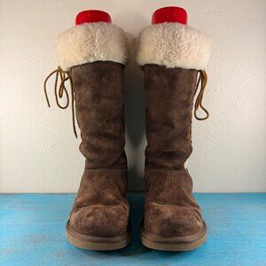 UGG Upside Shearling Cuff Winter Snow Boots Chestnut Leather 5163 Sz 10