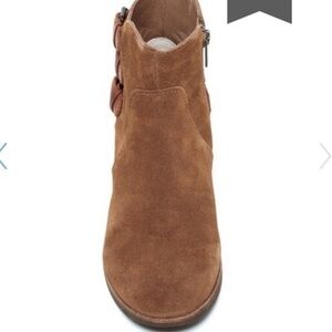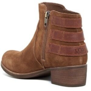 The UGG® Volta Brown Suede Leather Ankle Boot Crafted from premium leather this buckled beauty from UGG® is the perfect boot for everyday wear. Fixed leather straps wrap the rear of richly oiled waterproof Suede leather boot. Leather lining also features as well as foam cushioned block heel. Zip fastening lends its self to the signature UGG® style creating comfort and wear ability. Heat embossed UGG® logo is seen to the lower strap, finishing these New Season boots off perfectly.