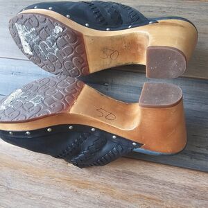 UGG Vivica Black Leather Mules / Clog Shoes Women’s Sheepskin Slip-On Size 10 US