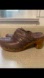 UGG Vivica Camel Leather Clog. Size 8 Wooden Heel. Sheerling Insole. Studded.