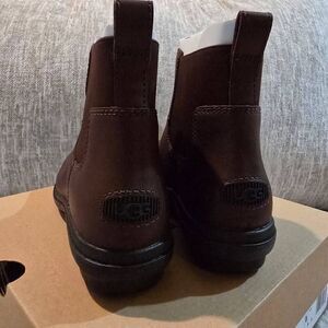 • Indulge in warmth and style with these chic and fashionable UGG® Hapsburg Chelsea boots made from waterproof cow leather with seam-sealed construction. It has breathable microfiber textile lining with PORON® and a removable foam footbed offering all-day comfort.