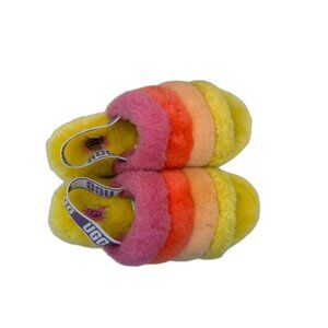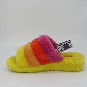 UGG WOMEN FLUFF YEAH SLIDE PRIDE RAINBOW YELLOW SANDAL Size 8.0 US