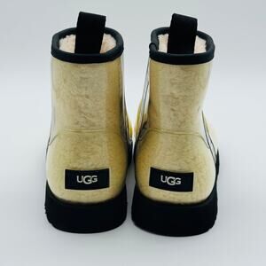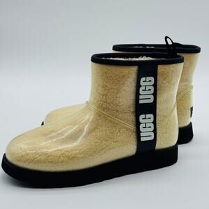 UGG WOMEN'S CLASSIC CLEAR MINI NATURAL BLACK BOOT FAUX FUR WOOL LINED SIZE 9