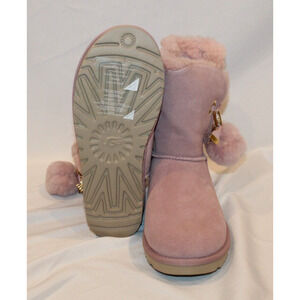 UGG WOMEN'S IRINA STAR CHARM BAILEY POM SUEDE SHEARLING ANKLE BOOTS PINK