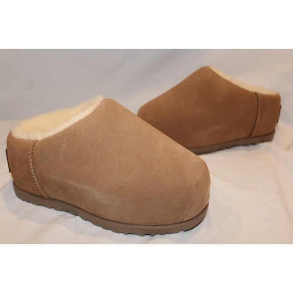 UGG WOMEN'S PUMPED SUEDE SHEARLING LINED CLOGS CHESTNUT NIB
