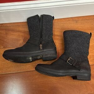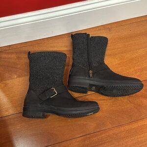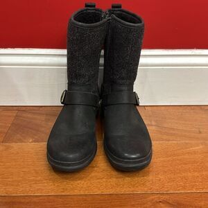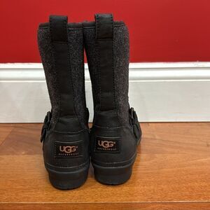 UGG Waterproof Black Leather Wool Shearling Mid-Calf Robbie Moto Boots 5 in excellent condition.