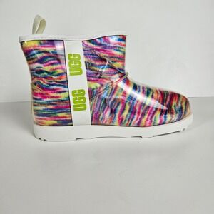 UGG Waterproof Classic Clear Mini Short Multicolor Rainbow Rain Boots Women's 6