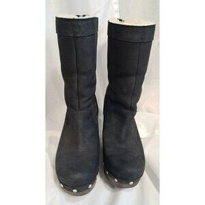 UGG Womans 7 Carnegie Leather Shearling Fur Lined Clog Boots Wood Heel Platform