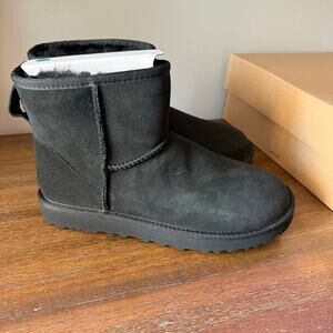 UGG Woman’s Black Classic Mini Suede Slip On Winter Boots- Size 8