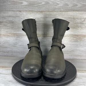 UGG Woman’s Grindle 1004133 Black Leather Fur Buckle Moto Boots Size 7