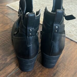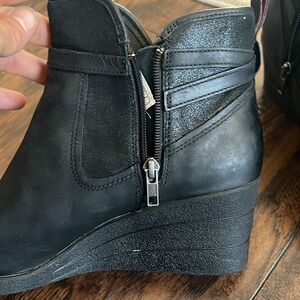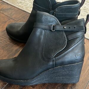 UGG Women Emalie Wedge Bootie Size 10 Waterproof Black Leather Sheepskin Comfy EUC