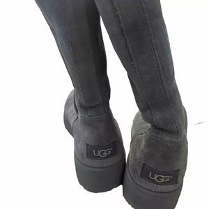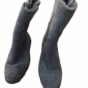 UGG Womens style #1013428 Grey Round Toe Pull-On Suede Slim Wedge Boots Size 7. They are the slimmer style uggs with a small wedge. In excellent condition - not worn very much. From a clean smoke free home.