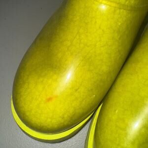 flaw: orange stain on top of boot, signs of wear discoloration on sole (see pictures)