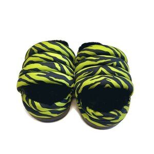 UGG Women's 6 Maxi Slide Tiger Print Sheepskin Platform Slippers Key Lime Green
