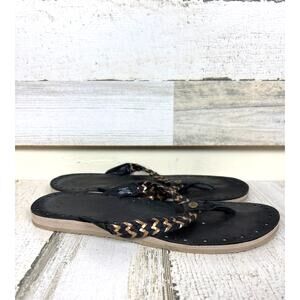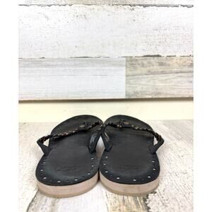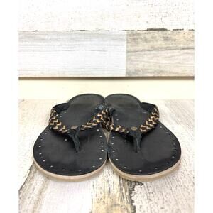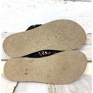 UGG Women’s 7 Black Tan Leather Braided Slip On Flip Flop Sandal Summer Beach