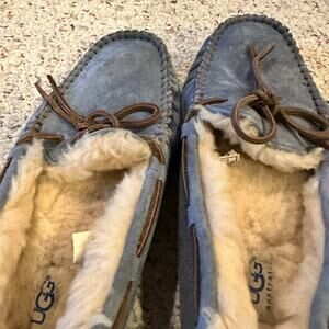 UGG Womens size 8 Dakota Suede Sheep wool Moccasins Slippers Sheepskin Shoes Blue