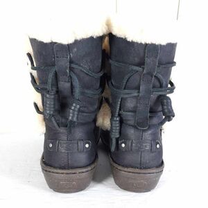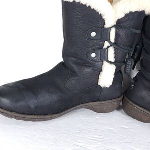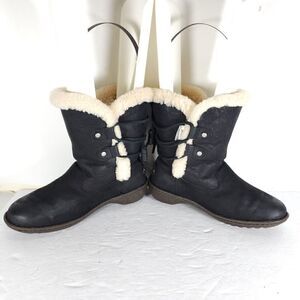 UGG Women's Akadia US 7 Black Leather Sheepskin Shearling Mid Calf Winter Boots .