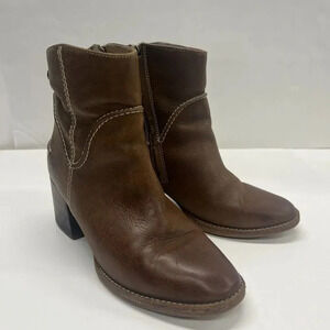 UGG Women’s Annie Leather Bootie Block Heel Boots Chestnut Size 7 City Western