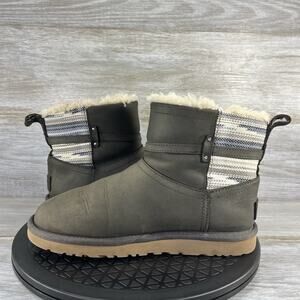 UGG Women’s Auburn Serape Water-resistant Gray Leather Short Boots Size 6