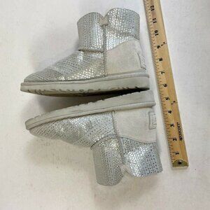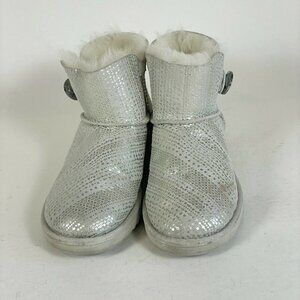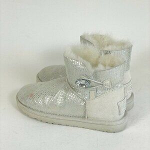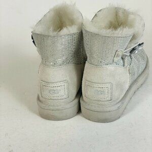 UGG Womens Bailey Button Bling Sheepskin Boots Silver Sz 5 Fur Trim Suede Mid