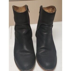 UGG Women’s Black Leather Chunky Heel Round Toe Ankle Boots Size 9 PO Good