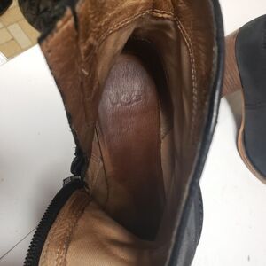 UGG Women’s Black Leather Chunky Heel Round Toe Ankle Boots Size 9 PO Good