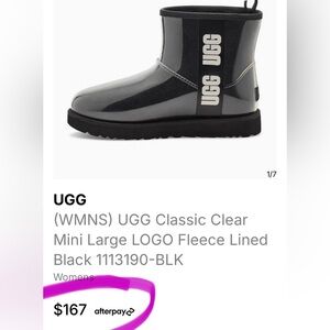 UGG Women’s Black/Clear Classic Mini Large LOGO Fleece Lined Boots/Bootie | NEW