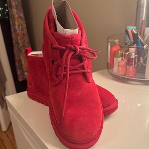 Vibrant red boots with lace-up design. Perfect blend of style and comfort.