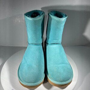 UGG Womens Boots Size 10 Suede Mid Calf Turquoise Teal Blue Winter Fur Snow UGGS