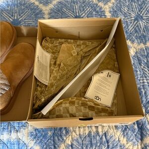 Soft suede boots for women.Cozy and stylish. Perfect for everyday wear. These are brand new, never worn, with an Ugg box (the box is not for these boots but I will sell with box) size 7. They are somewhat difficult to get on, however, this will become easier as you wear them.