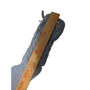 UGG Womens Cable Knit Fleece Lined Socks With Pom Cozy Winter Light Gray Warm