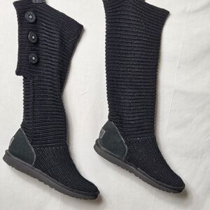 UGG Women's Cardy Tall Black Sweater Knit Button Boots Size 7